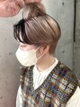 ブリーチ1回で、インナーブロンドで表面はブラックに。表面の面積は少なめにして、ブロンドが間から出やすくしてます。