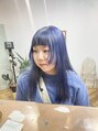 ブリーチ2回ベースをリタッチで繋ぎ濃いめの青を入れました色落ちをグレーっぽくなりやすいよう、ベースを抜いてオンカラーは若干紫も混ぜて選定してます