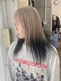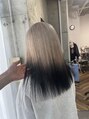 ブリーチ2回ベースに寒色寄りのミルクティーにして毛先にぼかしながら黒を入れました裾カラーに比べて、幅が広めにしたのでぼかして馴染みのいいようにしました
