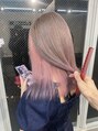 ブリーチ2回ベースをリタッチで繋げ、表面に少し暗めのミルクティーを入れて、内側に明るめで彩度の高いピンクを入れましたカラー剤の塗り分けのインナーカラーにすることで今後の幅も広がります
