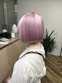 ピンク×ホワイト ポイントカラー/デザインカラー/ボブ