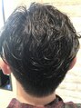メンズらしくサイドを2ブロックに短く刈り上げバックにいくにつれてグラデーションをかけてカット!パーマでトップにカールウェーブをつけて動きを出しました。