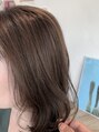 切りっぱなしの前下がりワンレンンベース(切りっぱなしとは言え毛先は少しぼかします)にイルミナカラー12レベルのスターダストで濃いめのアッシュ系カラーです!