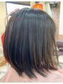 縮毛矯正ストレートで全体を整え、まとまる仕上がりに。アッシュベージュ系カラーでツヤと軽さを。ボブベースにレイヤーを入れてアレンジしやすいスタイルに。