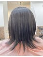 鎖骨ラインのミディアムレイヤー。顎下から内巻きに仕上がるようレイヤーで柔らかさを。オーガニック成分配合グレーカラー・7トーンラベンダーブラウンでツヤのある仕上がりに。