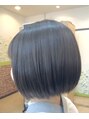襟足を少し刈り上げてスッキリさせたミニボブ。縮毛矯正ストレートで全体を整え、ツヤとまとまりのある仕上がりに。インナーを毛量調整で軽い質感に。スタイリングが時短に。