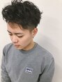 メンズスパイラルパーマサイド、バックはすっきりと刈り上げ少し長めに残したツーブロックスタイルにスパイラルパーマでランダムにうごかしています!