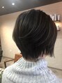 前下がりのショートボブですが、ハチ上に少しレイヤーをいれて動きがでるようにに^_^そしてクールになりすぎないように、グレー系のカラーをハイライトの上からオン!とてもくすんでいてすごく可愛いです(*^^*)