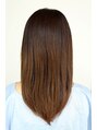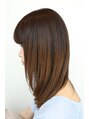 ストレートパーマで柔らかな質感を。レイヤーはほとんど入れずにまとまりやすく切っています。なるべくセニングは入れずにスライドカットで毛量を調整しています。カラーは8トーンのヴァイオレットブラウンでツヤ感と透明感をプラスしました!