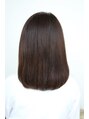 髪を暗めにしてツヤ感を強調したセミミディアムのストレートスタイルです。顔周りはレイヤーを入れて顔を包みこむように切っています。カラーは6トーンのダークグレージュカラーでツヤ感を際立たせるカラーとなっています。