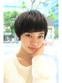 マッシュベースのショートスタイルです。顔まわりは丸さが出るように切り、全体的にやや重めのシルエットとなっています。ベーシックな黒髪のショートレイヤーだとメンズライクに傾きがちですがマッシュにしてあげることで解消されます。