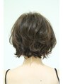 リップラインのショートボブスタイルです。基本は前下がりですが顔まわり、トップにはレイヤーが入って軽いスタイルとなっています。毛先中心にかけたパーマにより、ランダムな毛束感とラフな動きが出るようになっています。