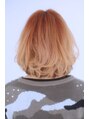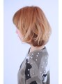 ソフトフリルなボブスタイル。肩ラインの前下がりベースでカット。全体に柔らかさを出すためにセニングは使わずスライドカットのみで毛量調整。パーマは30mmのロッド1回転半巻きの毛先のワンカールメイク。