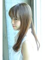 セミロングレングスでローレイヤーベースのストレートスタイルです。前髪は厚めにして顔を引き締め、ハチ張りもトップの位置をてっぺんにすることによりコンパクトに仕上げています。
