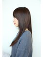髪を暗めにしてツヤ感を強調したロングのストレートスタイルです。レイヤー幅は少なくしてまとまりやすくに切っています。毛先を少し重めにしていますので、乾かすだけで簡単にまとまるヘアスタイルとなっています。