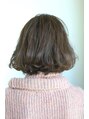 コールドパーマでゆるめのパーマをかけてニュアンスの動きをつけて柔らかさを出しつつはトップはふんわりさせてエアリーな質感に。カラーは7トーンのアッシュグレージュカラーで透明感をより強調した色味となっています。