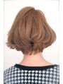 カラーはハイトーンのアッシュブラウン。 お肌に合わせたファンデーションカラーにより目もとを強く見せ、肌を滑らかに白く見せます。 スタイルは顎先に向けた前下がりボブ。丁寧にスライドカットを入れて自由に動く髪の束を作りました。