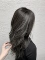 全体にハイライトを入れ、ベースは赤味を消したスモーキーアッシュで暗めに。ハイライトの部分はホワイト系の色をオンカラーしています。