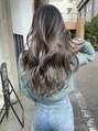 外国人風バレイヤージュ、ハイライトカラーアッシュグレージュ