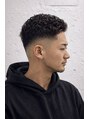 0mmスタートのフェードでサイドはビシッと締め、トップはカールを綺麗に出して立体感と色気をプラス。やり過ぎないのに迫力のある、イケイケ男子向け攻めスタイル。