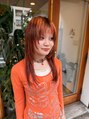 ミディアムレイヤー/レイヤースタイル/ハイレイヤー/顔まわりレイヤー/オレンジカラー/デザインカラー/ハイトーン/ポイントカラー/ウルフスタイル/ウルフカット/デザインカット