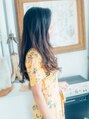 外国人くせ毛風に仕上げたロングスタイル。ほぼノンレイヤーで表面のみに軽さをつけています。重たくなりすぎないように、フェイスラインは少し前上がりにレイヤーをいれています。肌を見えるようにすることで明るく抜け感のあるスタイルに☆