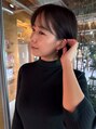 世代を問わず愛される、黒髪ミニボブ。少し幅広にとった「ワイドバング」がお洒落なアクセント。広がりやすいクセ毛の方でもまとまりやすいよう、重さを残してカットしています。耳に掛けるだけでスッキリとした清潔感が生まれます
