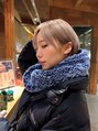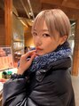 媚びないカッコよさが魅力の「金髪ハンサムショート」です。センターパートの前髪からサイドへ流れる毛流れと、タイトに締めた襟足で、洗練された都会的なシルエットを作りました。ハイトーンならではの圧倒的な透明感が、クールなショートスタイル