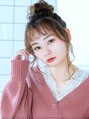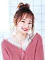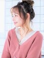 ミックス巻きしたベースを手ぐしで高めの位置でまとめ、ランダムに崩しながらルーズなお団子になるようにアメピンで留める。ルーズに引き出した毛束が可愛さUP。