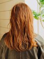 ハイトーンのレイヤースタイル。 カラーは温かみのあるオレンジ系のブラウンにすることで柔らかい印象になり、春にぴったりのカラー。 前髪は顎下でカットすることで小顔になり、トップに入れたレイヤーも動きが出ます。