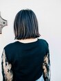 肩につかないくらいの長さで少し前下がりの強いボブに切りました。前髪もワイドバングでパッツンにし、肌の見え方がボックスになるようにすることによりとってもクールな印象に!かっこよくや大人っぽく見せたい人にオススメ。