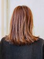 ナチュラルなミディアムスタイルです!重めなシルエットですが、ボリュームを適度に落とします。ボリュームをおとすと、内巻きにしても、はねてしまっても形になります。明るめなカラーリングで、軽さをプラスします!