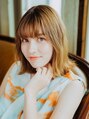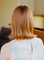ハイトーンカラーに外ハネロブの大人気スタイルです。カラーはミルクティベージュカラー、レングスは肩につくかつかないくらいです。外ハネするとちょうど良い長さです。前髪は目上ギリギリで巻くと眉毛が少し見えるのとすき間ができ抜け感が出せます!
