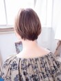 丸みのあるマッシュショートスタイルです★ノーバングで下ろすことにより、大人っぽい雰囲気の作れるスタイルになります。カラーは明るめのカラーがおすすめ★スタイリングにはオイルを使いさらっとウエット感を出すスタイルが今っぽいスタイルに☆