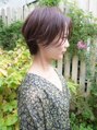 前下がりラインのセンターパートショートです。 いつものショートスタイルに飽きた方におすすめです。 前下がりのスタイルは大人っぽくクールな印象になるので、いろいろな年代の方に似合わせができるショートスタイルです。