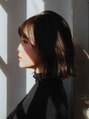肩上のらいで切りっぱなしボブスタイルにカットして、表面に少しレイヤーを入れることで動きのあるボブスタイルになります。バングは透け感を出した甘すぎない抜け感のあるスタイルに。カラーはアッシュ系の赤みを抑えたブラウンに。