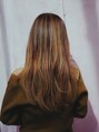 セミロングレングスのレイヤースタイル。カラーは根元を少しあけて全体ブリーチ。ハイライトをさらにプラスしています。毛先になるにつれて明るくなるグラデーションカラーに。色味はあまり入れずほぼ抜きっぱなしに。おしゃれ感と立体感を。