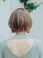 モデルさんの柔らかい印象に合わせボブの中にもレイヤーを少しいれ、動きのあるニュアンスに作りました。 前髪にもシースルーを取り入れ、面の面積をより出してのスタイルになっています。カラーはベージュの色味にグレージュを入れ、透明感を出しました。
