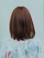 あご下でカットしたノーマルボブ。!ナチュラルに毛先が内側に入るようにカットしているので、スタイリングも楽チン!ボブの形は崩さないように、トップのみにレイヤーで軽さをだしています。カラーはほんのり紫足して艶を出しました!