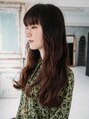 切りっぱなしのロングなので、重くならないようにふんわりブラウンに染めました。前髪と後ろ髪をパッツンにすることによって、統一感のあるスタイルに仕上げてます。秋っぽいカラーなので、今の季節にぴったりです。