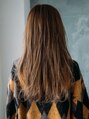 胸くらいの長さをベースに前髪を長めに作ったレイヤーデザイン。フロント側のみ急な段が入る事で縦長でカッコいい雰囲気をキープしています。カラーは透明感をしっかりだし、暖かみを残したブラウンにする事で外国人のすがみのようなムードにしあげています。