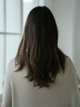 ナチュラルなストレートロングスタイルで大人っぽい印象になってます。ハイレイヤーを入れて軽さやまとまり感のあるヘアスタイルになっています。カラーは自然でナチュラルブラウンで明るくすぎないようにしています!