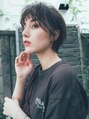 ぱつっと眉上になるくらいの長さでカットすることで すこしモード感、抜け感をだしています。全体をダークグレージュに染めて、暗いけど透明感のあるカラーです。ショートだけど、襟足をあえてすこし重めに切る事で柔らかさをだしています。
