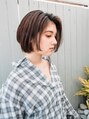 ナチュラルな印象ですが、クールでかっこいいボブスタイルです!7:3で分けた長めなバングと立ち上げたバングがイメージを変えます。ナチュラルにワンカールに巻いて仕上げる簡単スタイリング!軽くスタイリング剤をつけて艶をだします。