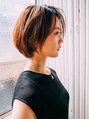甘過ぎない大人ショートボブスタイル。シルエットをひし形になるようにうに意識することで小顔を出します。表面にレイヤーを入れて重過ぎないスタイルやカラーを暗過ぎない色にすることで軽い印象を与えます。