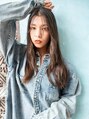 ロングヘアの髪の毛は緩く巻いてあることで大人っぽさをだしています。前髪は長さがあるのでセンターパートにして、シースルーにすることで動きがでるようにしました。髪色もダークブラウンにしてクールさをだしました。