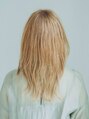 全体的にレイヤーを入れているので軽い印象になります。顔まわりは顎ラインに髪の毛がくることでウルフ風に。前髪はシースルーにして肌を見せることで重たく見えるのを防ぎます。顔まわりに髪の毛があるので小顔 効果もあるスタイルです◎