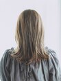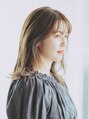 ナチュラルなセミロングスタイルです。長さは鎖骨くらいで結べる長さに。顔まわりは顔に沿うようにレイヤーを入れて重すぎず無造作な雰囲気に仕上がっています。カラーは透け感があり赤みを抑えた大人っぽいカラーリング。