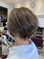 丸みの位置を低めに設定し、トップのふんわり感、動きをだしたスタイルとなっています☆耳にかけてもとても素敵にきまります^^