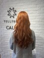 できるだけ傷まないようケアブリーチを使い、エドルカラーで透明感あるアプリコットオレンジに♪トリートメントでしっかりケアをしているのでブリーチをしていても艶のある仕上がりです!